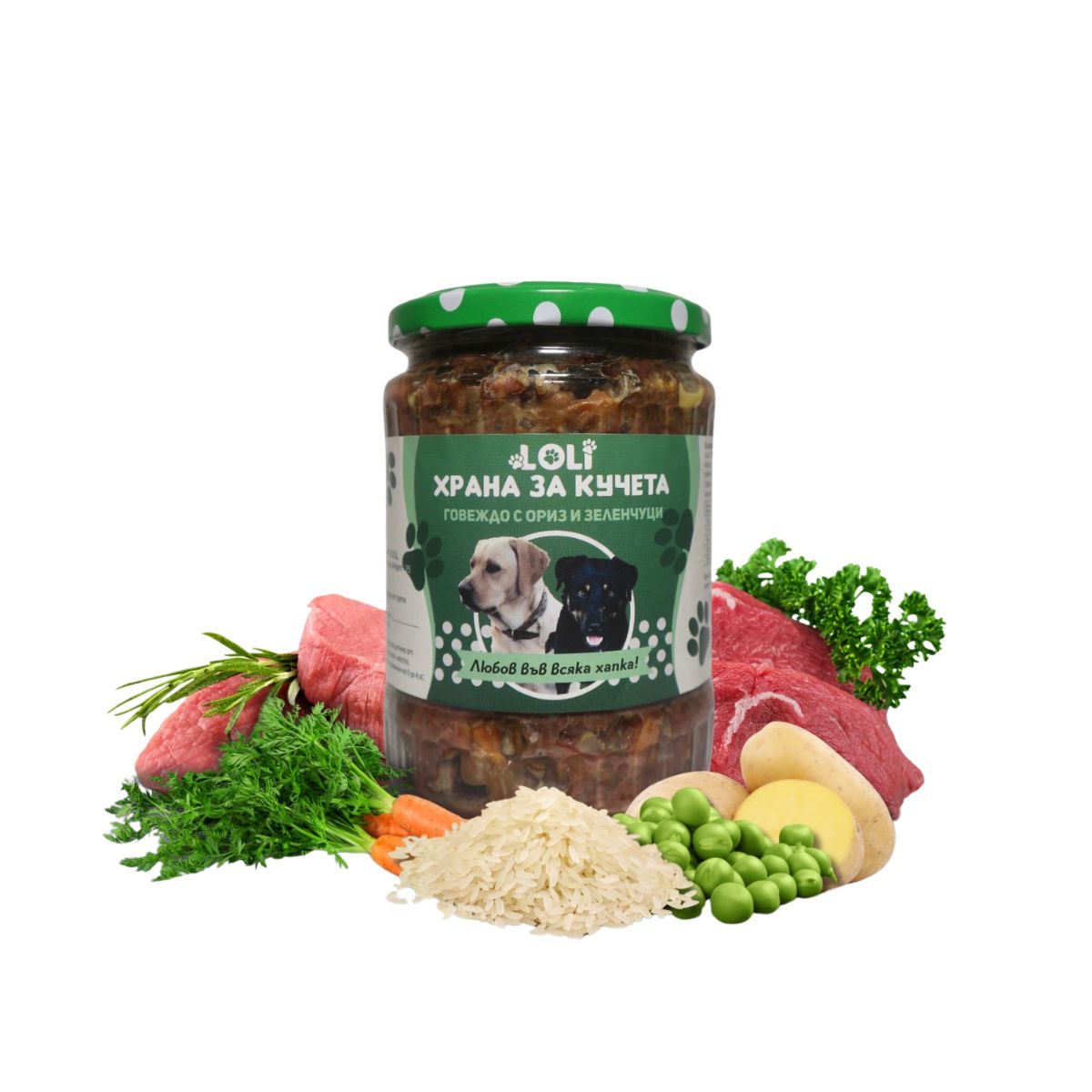 Домашна храна за кучета с Говеждо и Зеленчуци – LOLI буркан 500 г