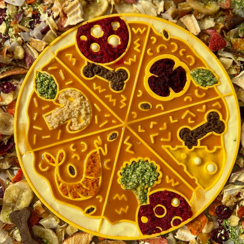 Неплъзгаща подложка за близане за кучета и котки Fiboo Licking Mat Fizza Yellow – забавя храненето, успокоява и отпуска 🐶🐱🍕