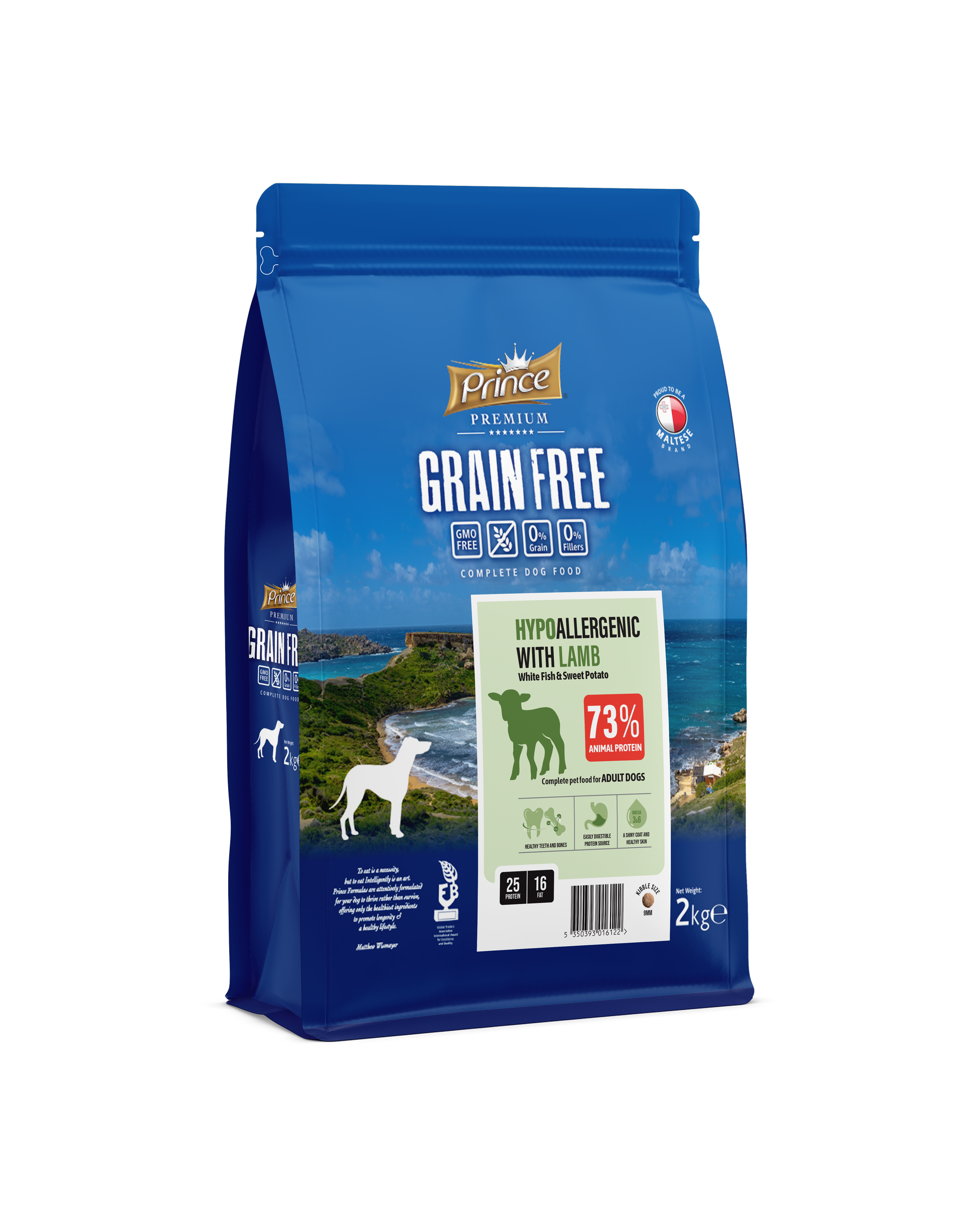 Хипоалергенни гранули за кучета с агнешко, бяла риба и сладки картофи, без зърно и без глутен PRINCE GRAIN FREE Hypo Lamb 2kg/12kg - за средни и едри породи