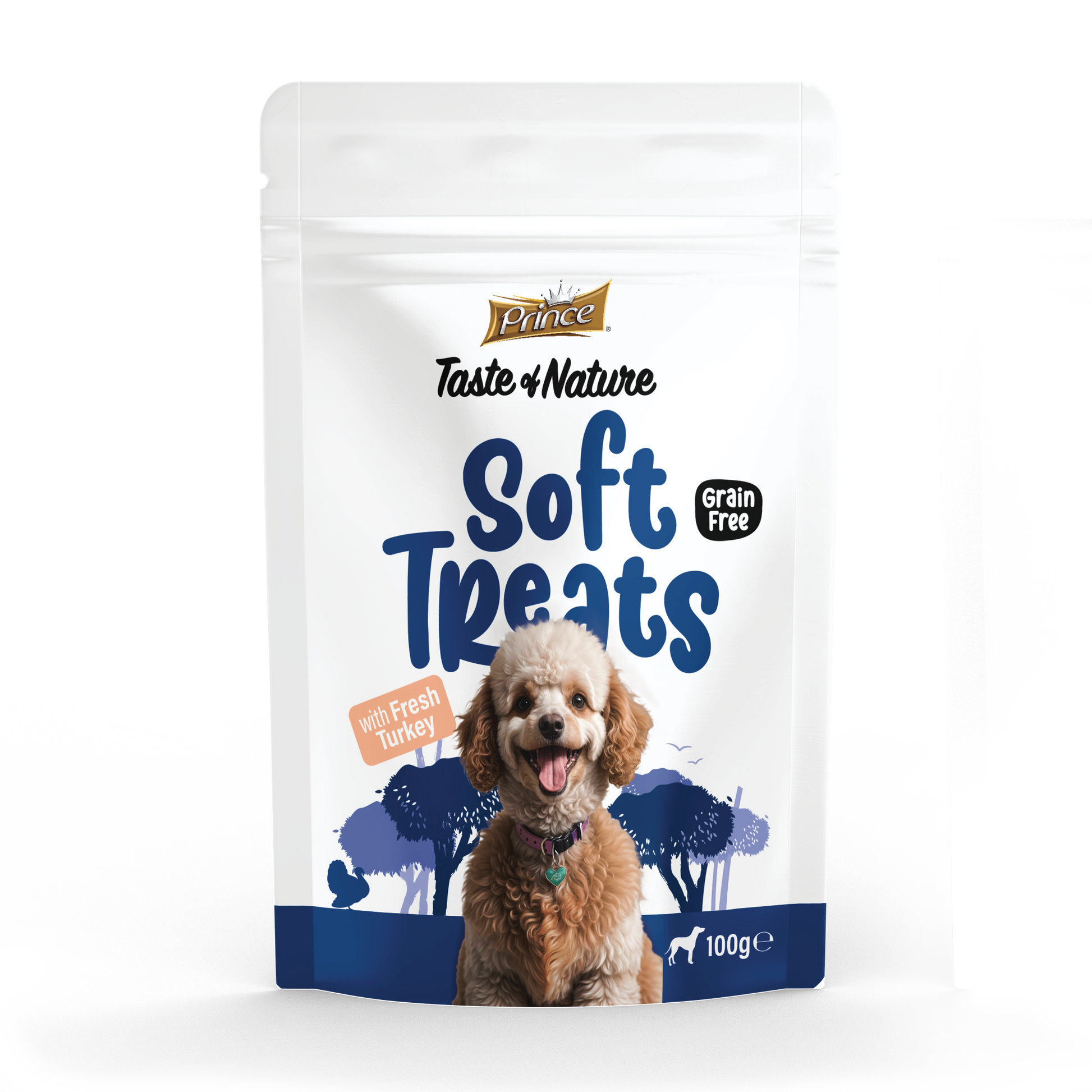 Prince Soft Treats с прясна пуйка предлагат 25% протеин от пуйка от един източник, което ги прави вкусна и питателна закуска за домашни любимци. Комбинирайки прясна и дехидратирана пуйка със сладки картофи и грах, тези лакомства осигуряват лесно смилаеми хранителни вещества, като същевременно са нежни към чувствителните стомаси. Обогатени с естествени антиоксиданти, те гарантират здравословна и вкусна награда за вашия домашен любимец.